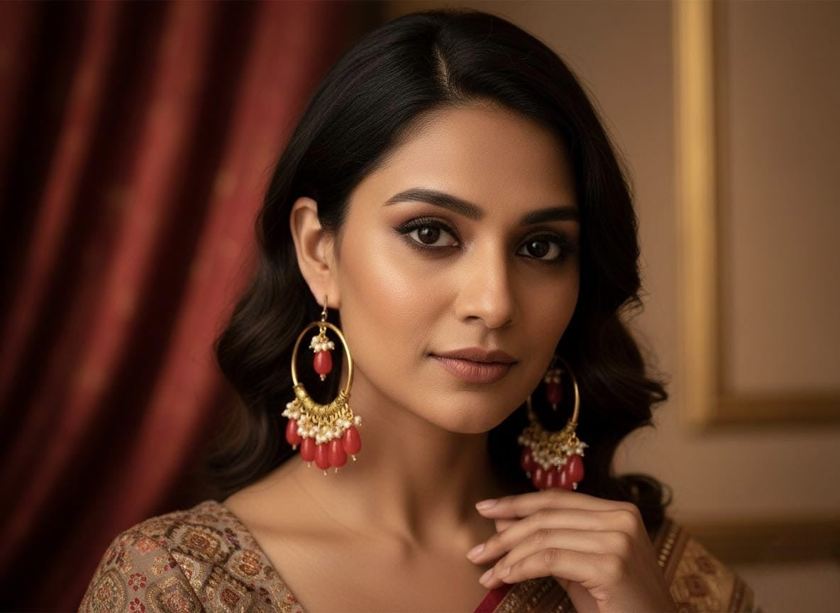 These are traditional Indian-style beaded hoop earrings, commonly known as "Bali" earrings. They feature a blend of ethnic artistry and vintage-inspired design.
