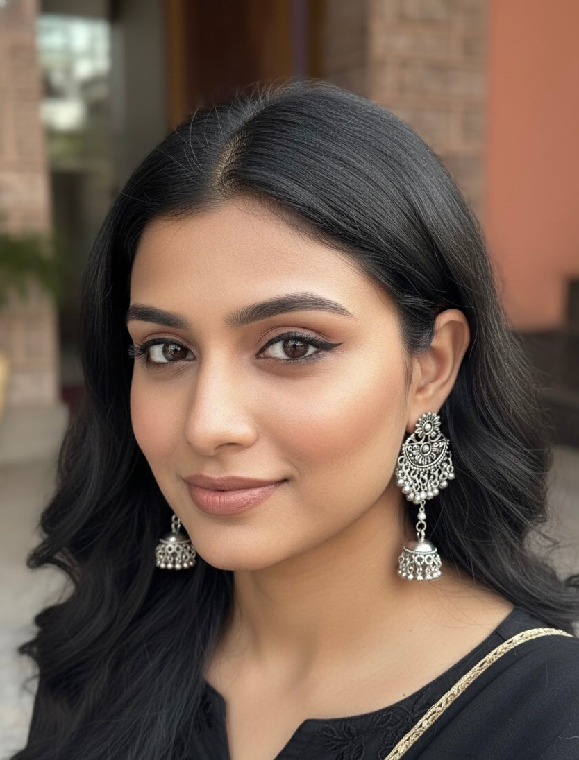Exquisite Oxidized Silver Jhumka Earrings"